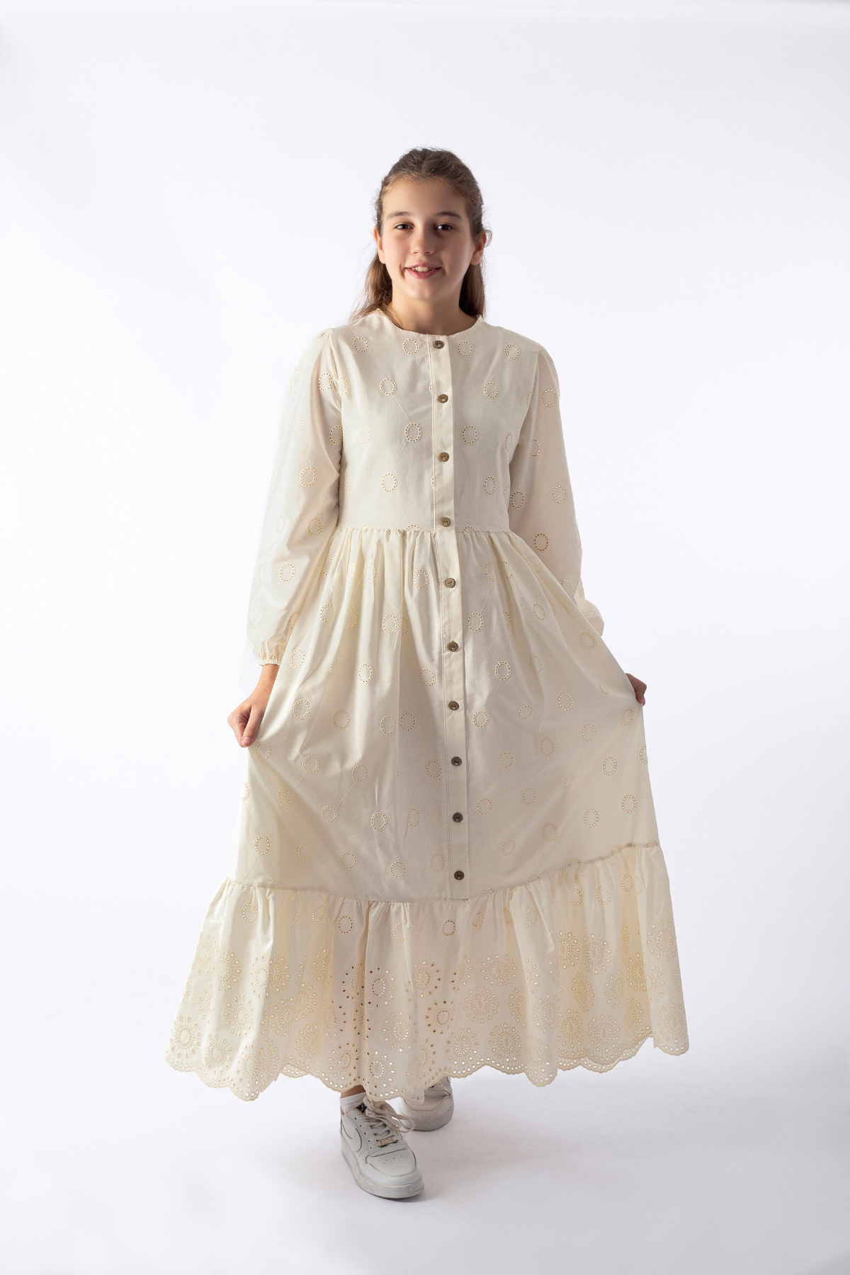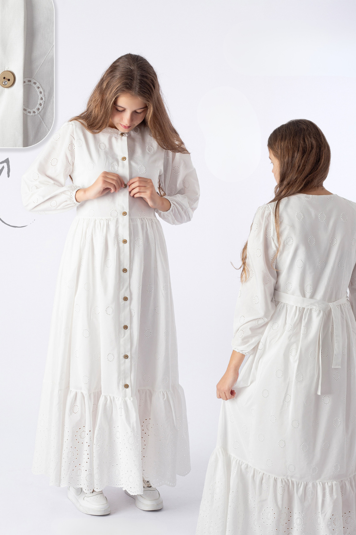 - Kumaş: Yüzde 100 pamuklu brode kumaş, hafif, nefes alabilir ve cilde dost bir yapıya sahiptir.
