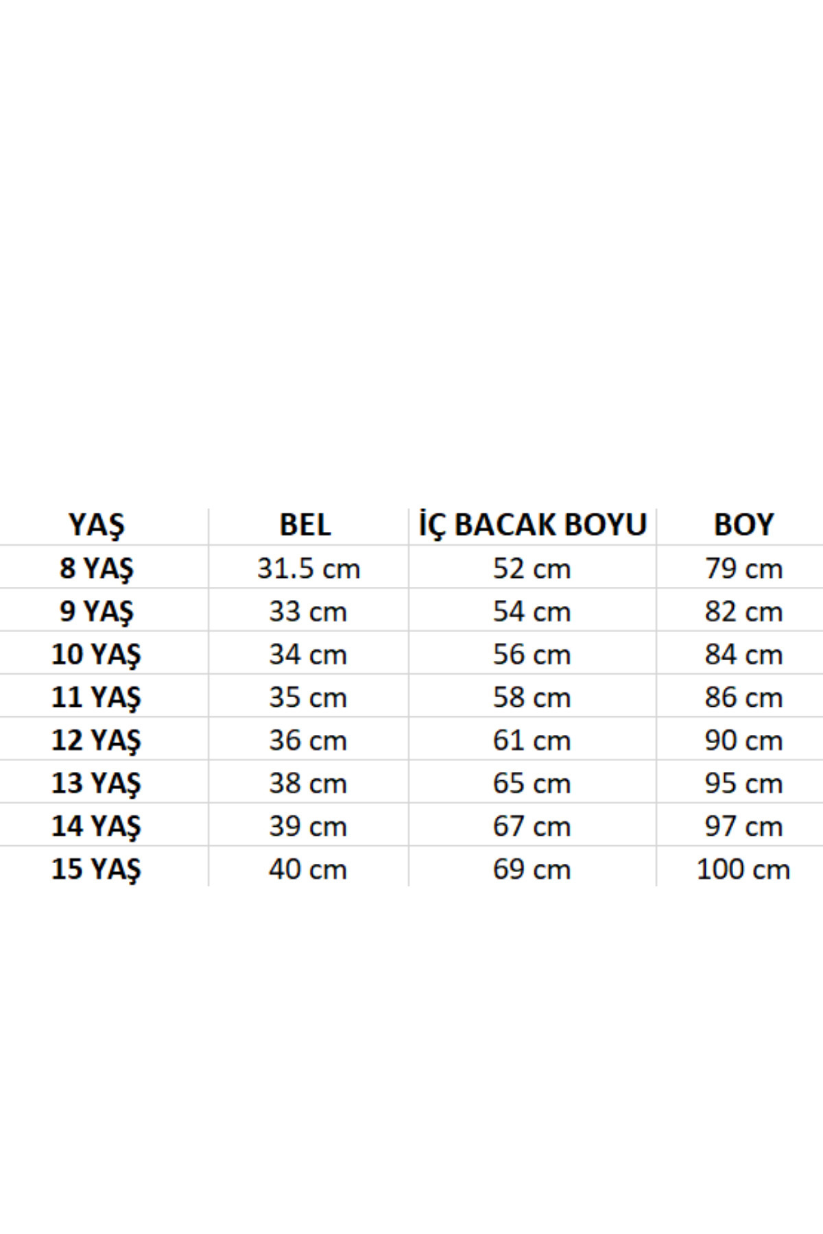 - 8-15 yaş arası çocuklar için ideal beden seçenekleri sunan geniş yaş grubu.